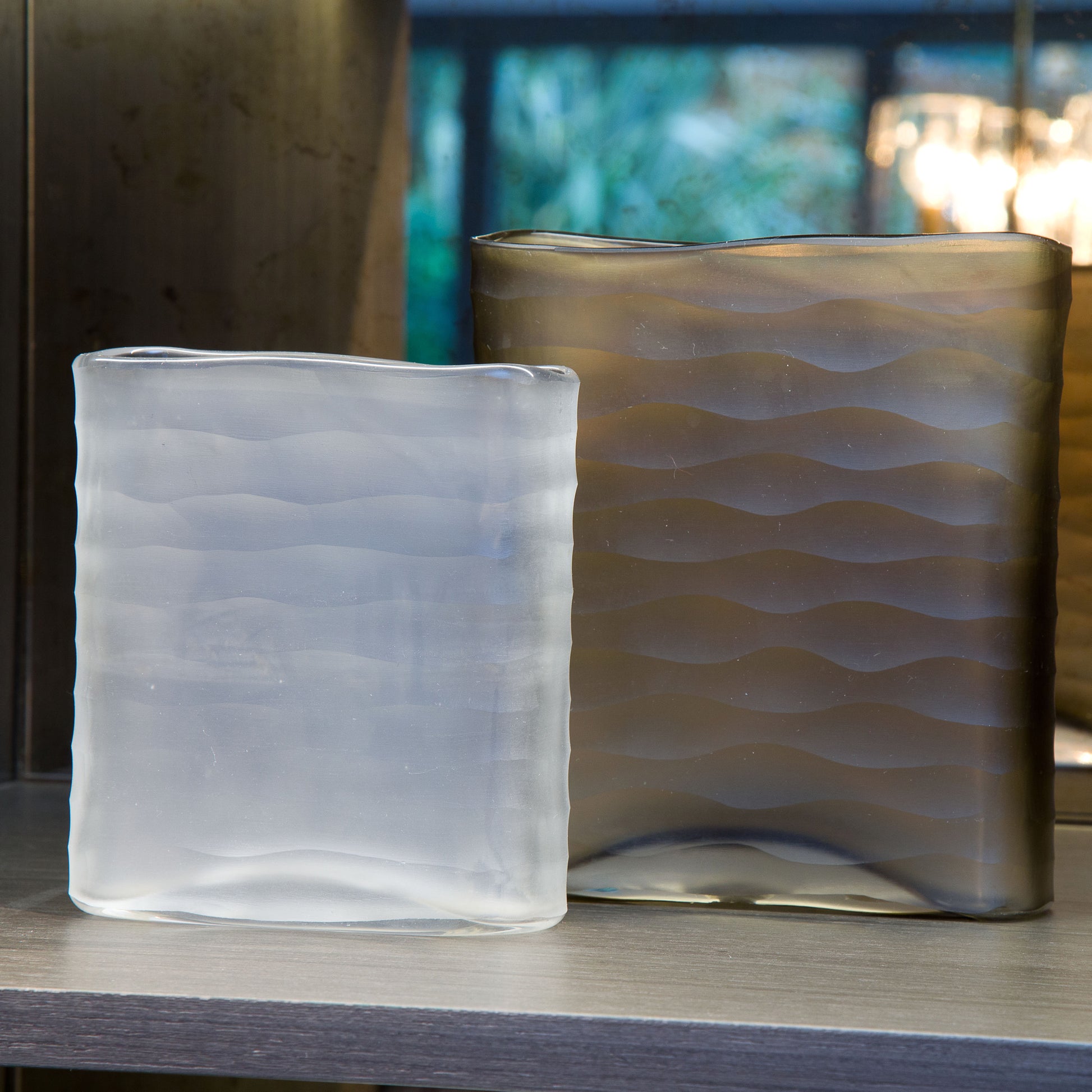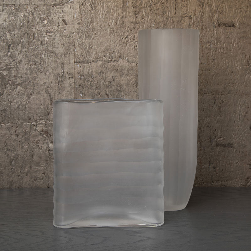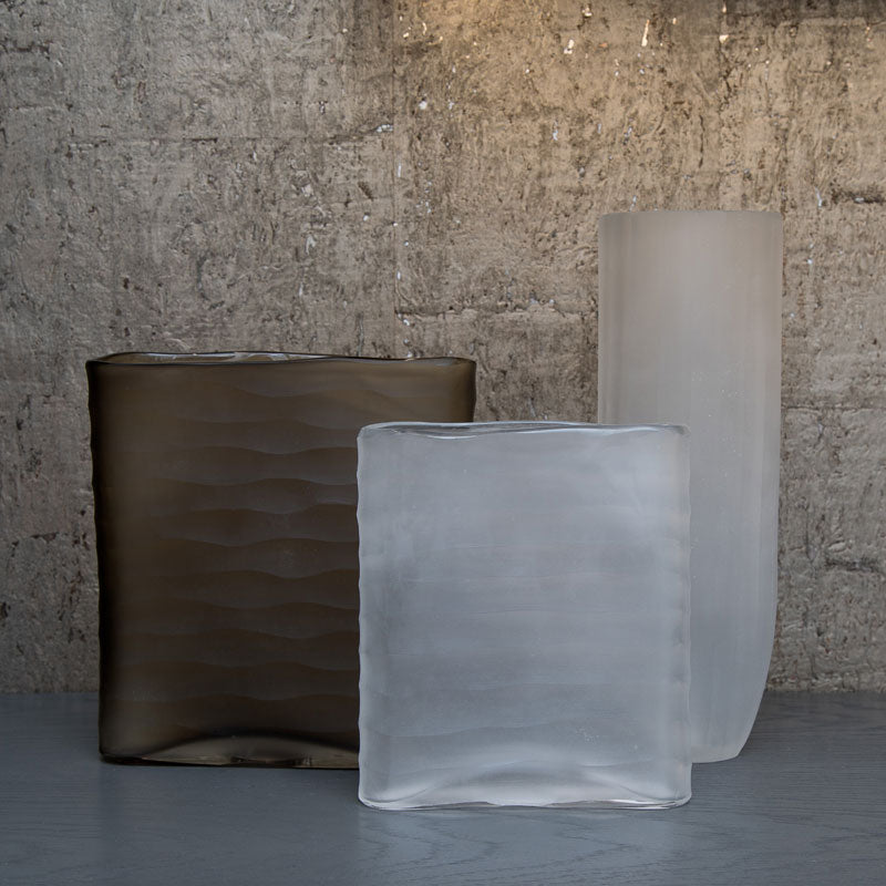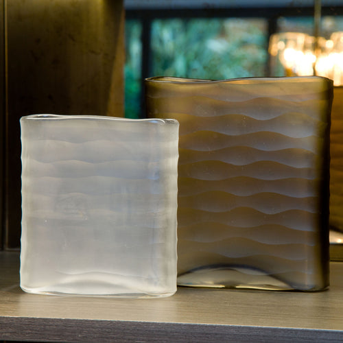 Add some elegance to your home with this gorgeous carved cube vase. The ribbed glass mixes straight and curved lines depending on the surface and brings texture to the piece.