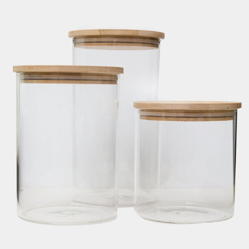 Add some style to your kitchen with these simply gorgeous Ava glass jars with a bamboo lid. They are perfect for storing all types of food in your pantry. Choose from the collection with a range sizes to suit your kitchen.